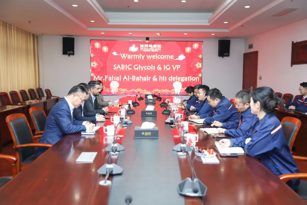 3月5日上午,沙特基础工业公司(SABIC)化学品战略事业部乙二醇及工业气体业务部副总裁FaisalAl-Bahair携代表团来访新凤鸣,集团董事长庄耀中、副总裁林镇勇等热情接待。