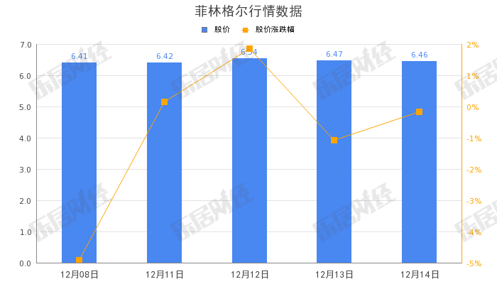 截至12月14日,菲林格尔(603226.SH)股价收盘报6.47元,跌0.15%,总市值22.96亿元。