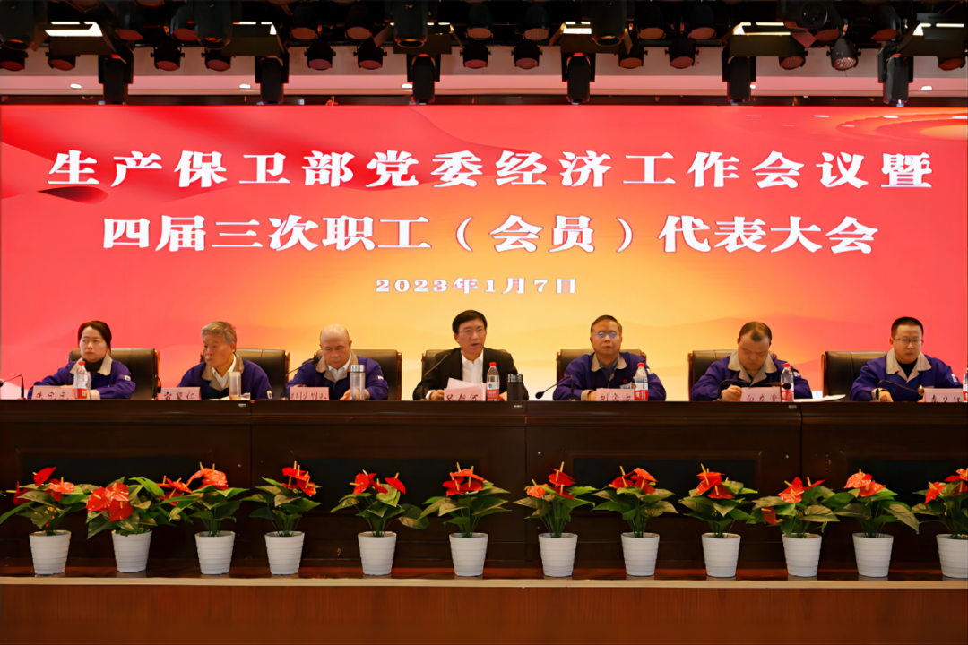 1月7日,生产保卫部党委经济工作会议暨四届三次职工(会员)代表大会在生产保卫部四楼会议室隆重召开,集团公司总工程师张新河到会指导。生产保卫部党委委员、纪委书记、工会主席迪力夏提·阿吉海山主持会议。生产保卫部领导班子与职工(会员)代表、特邀代表、列席代表共118人汇聚一堂,回顾喜人成绩,履行使命担当,部署2023年重点任务。