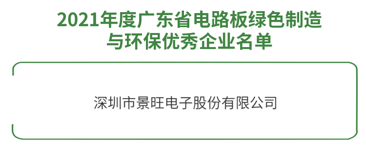 近日,广东省电路板行业协会(GPCA)/深圳市线路板行业协会(SPCA)与深圳市环保产业协会共同开展“2021年度广东省绿色制造与环保PCB企业评选”活动。景旺电子获评2021年度广东省电路板绿色制造与环保优秀企业。