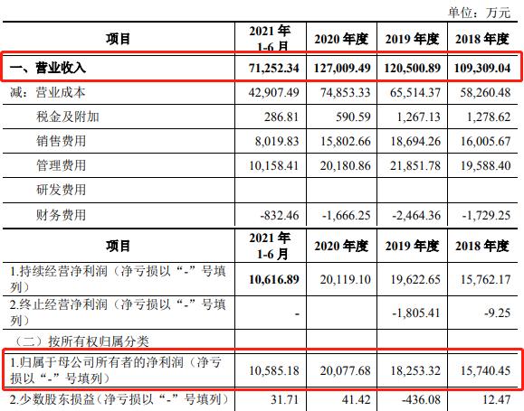 近四年来,内蒙新华的盈利能力整体不错,公司归母净利润持续上升。招股书显示,2018年-2020年以及2021年上半年,内蒙新华的营业收入为10.93亿元、12.05亿元、12.70亿元和7.13亿元,其中2018年-2020年的营收同比增长率分别为11.89%、10.24%和5.40%;同期归母净利润分别为1.57亿元、1.83亿元、2.01亿元和1.06亿元,2018年-2020年的归母净利润同比增长率分别为6.39%、15.96%和9.99%。