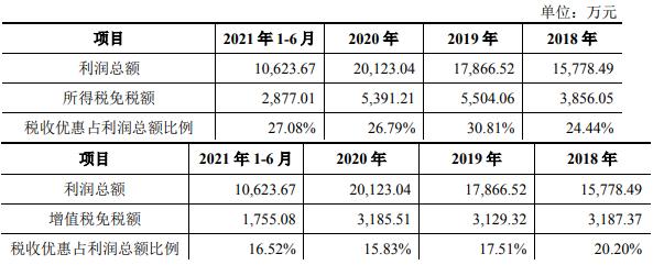 此外,内蒙新华还具有税收优惠占比较大的问题。2018年-2020年以及2021年,内蒙新华的利润总额分别为1.58亿元、1.79亿元、2.01亿元和1.06亿元;同期内蒙新华所得税免税额分别为3856.05万元、5504.06万元、5391.21万元和2877.01万元;内蒙新华所享受的增值税免税额分别为3187.37万元、3129.32万元、3185.51万元和1755.08万元,两者合计占利润总额的比例分别为44.64%、48.32%、42.62%和43.6%。