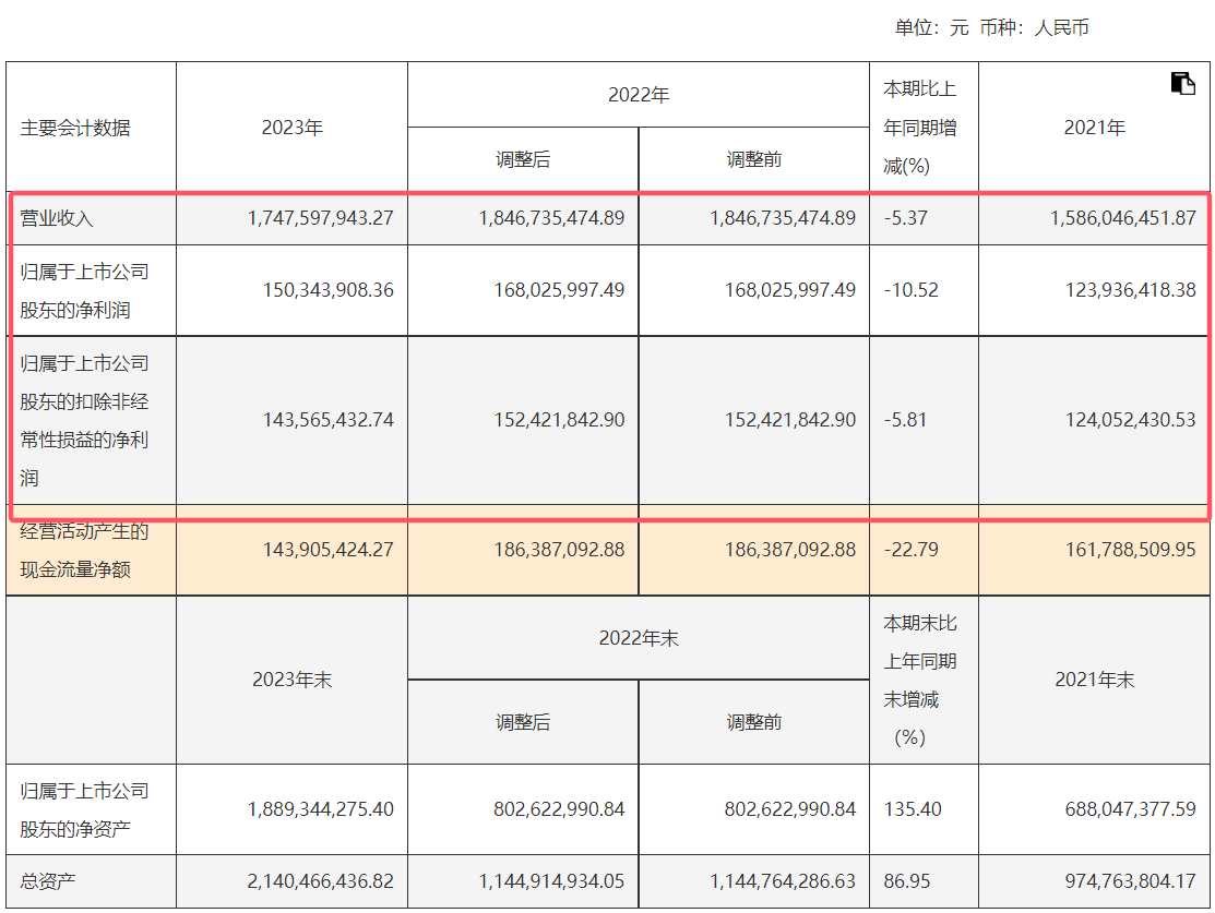 索宝蛋白自2023年12月上市以来,其业绩表现与市场预期存在较大差距。据财报显示,2023年公司实现营业收入17.48亿元,同比下滑5.37%;实现归母净利润1.5亿元,同比下滑10.52%。这一成绩与上市前的稳定增长形成鲜明对比,让投资者措手不及。