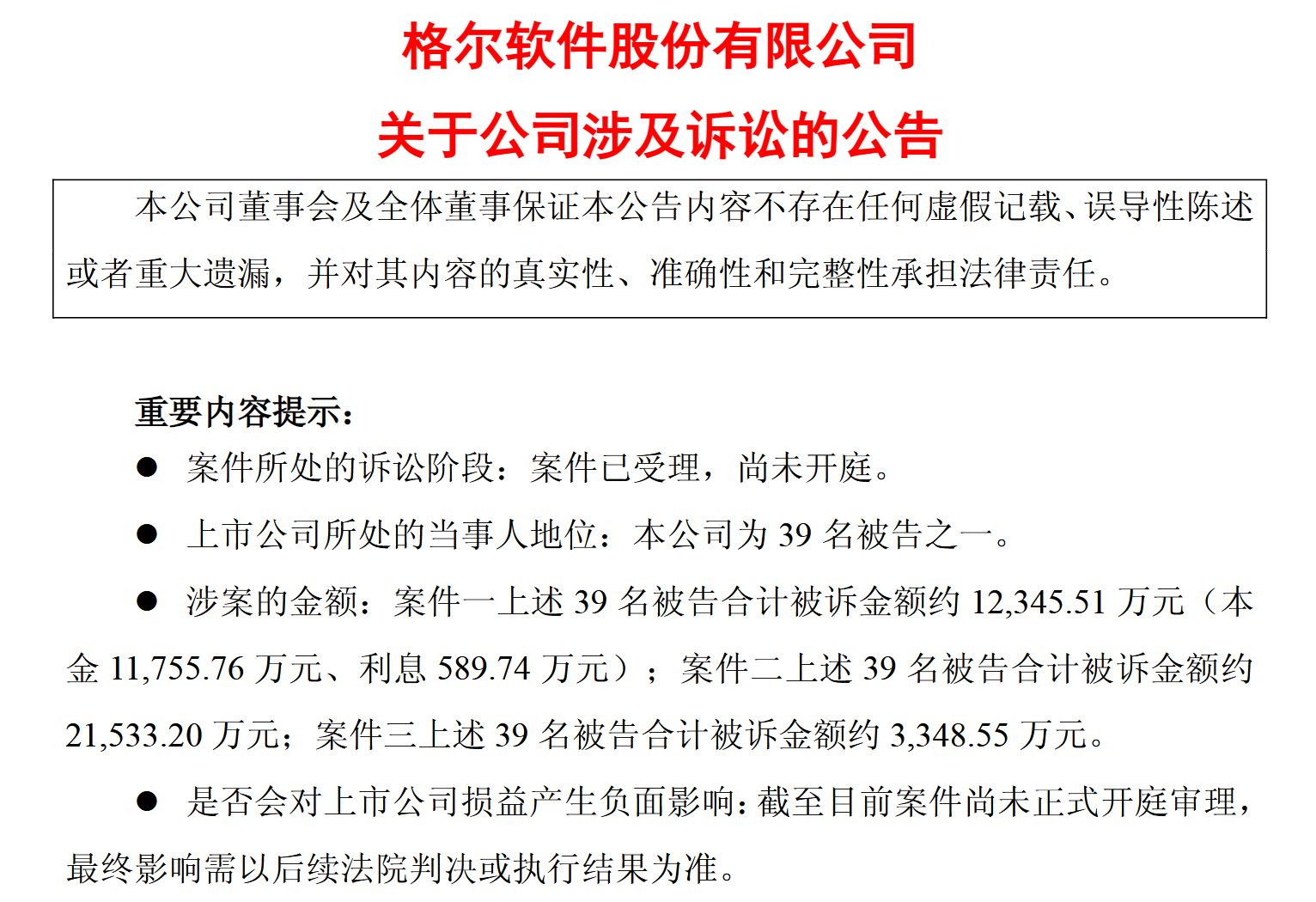 对于本轮诉讼的后续影响,格尔软件在公告中表示,由于本次案件尚未开庭,也未产生有效判决,目前无法判断对公司本期利润或期后利润的影响。