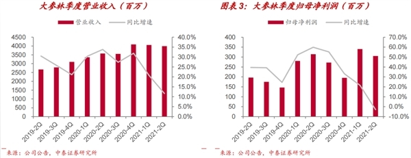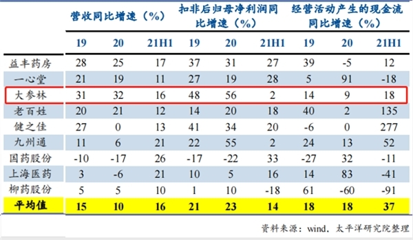 2021年中报显示,大参林实现归母净利润6.46亿元,同比增长8.56%;实现扣非净利润5.90亿元,同比增长1.65%。
