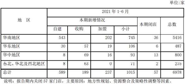 截至二季度,大参林共有覆盖全国十个省(市、自治区)的 6978家药店,新增自建门店589 家,加盟门店237家,并购门店189家,门店拓展计划完成顺利。