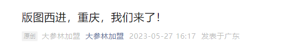 除了此次进军重庆市场,大参林加盟早在2022年5月就正式入驻了四川,成功完成川渝双地区加盟布局。
