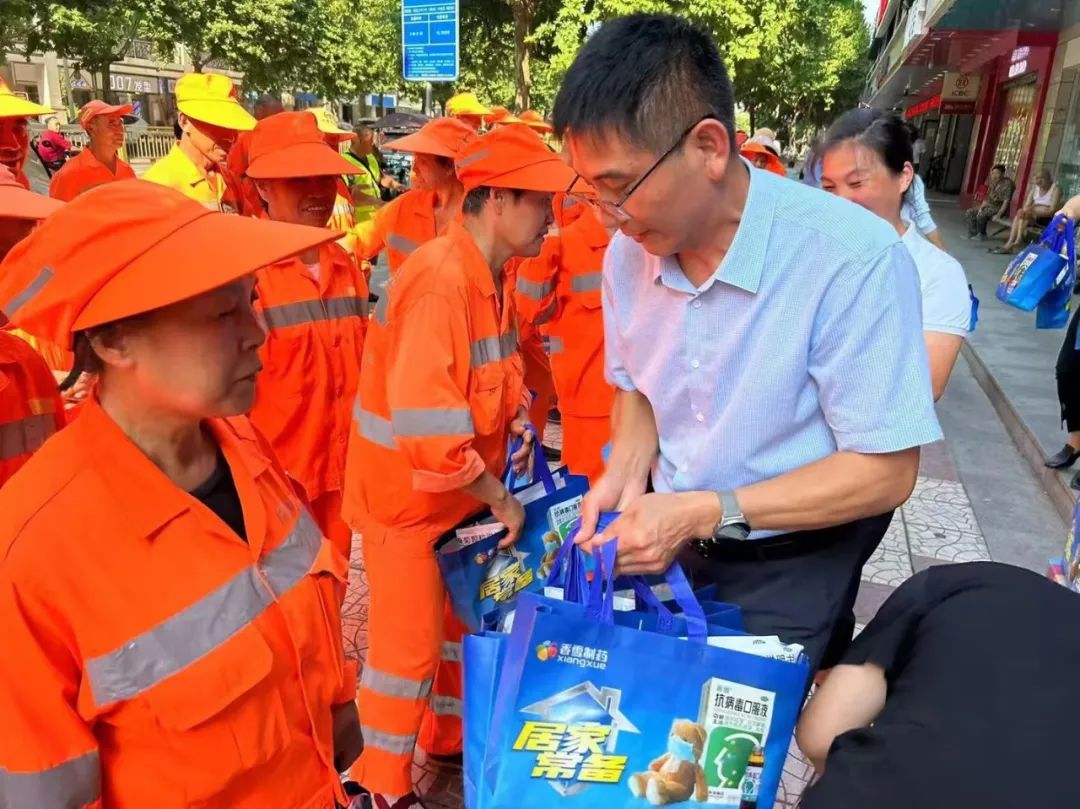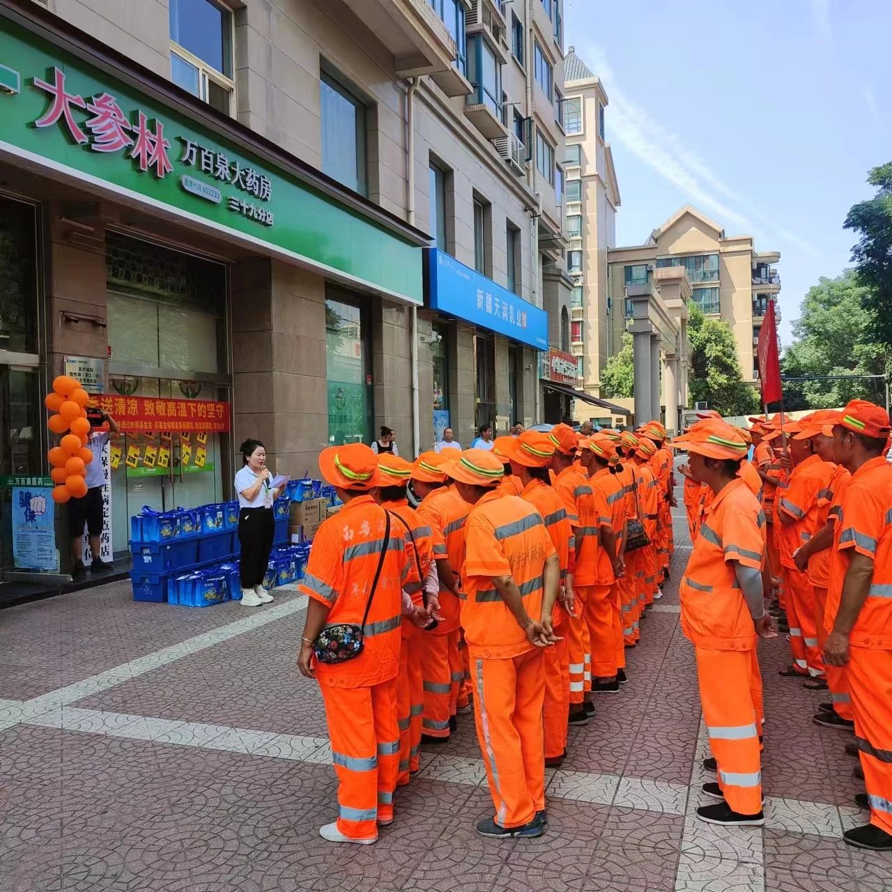 致敬高温下的坚守,8月16日,香雪制药携手陕西大参林、万百泉大药房开展了暑季送清凉公益活动,向西安市新城区韩森寨街道办的100多名环卫工送上了香雪板蓝根颗粒、夏桑菊颗粒等多种清凉消暑产品。当天,矿山路辖区的100多名环卫工人也收到了这份清凉的关爱。