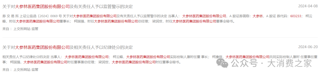 值得一提的是,公司在2月发布公告称:“为了提高公司经营管理的决策效率、推动职业经理人化、加快人才梯队的建设,董事柯金龙先生申请辞去公司第四届董事会董事职务,同时一并辞去第四届董事会提名委员会委员”。旋即在3月公布柯金龙被刑拘和公诉的情况,同时强调“柯金龙本人目前未在公司担任任何管理职务,不参与公司任何的经营管理事务,本次柯金龙涉及诉讼的事项,不会对公司的正常生产运营产生重大不利影响。”不久之后上交所连发2份公告,对大参林公司以及公司的实控人柯氏三兄弟、总经理、董秘给予监管警示和纪律处分的决定。