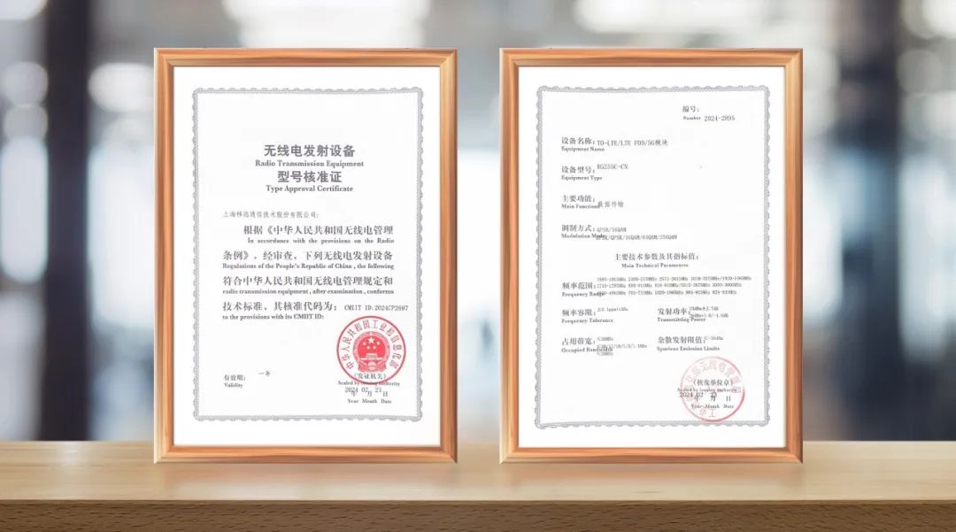 近日,移远通信5G RedCap模组产品再传喜讯——RG255C-CN顺利通过SRRC(无线电型号核准)认证测试,成为领先行业的轻量化5G产品。