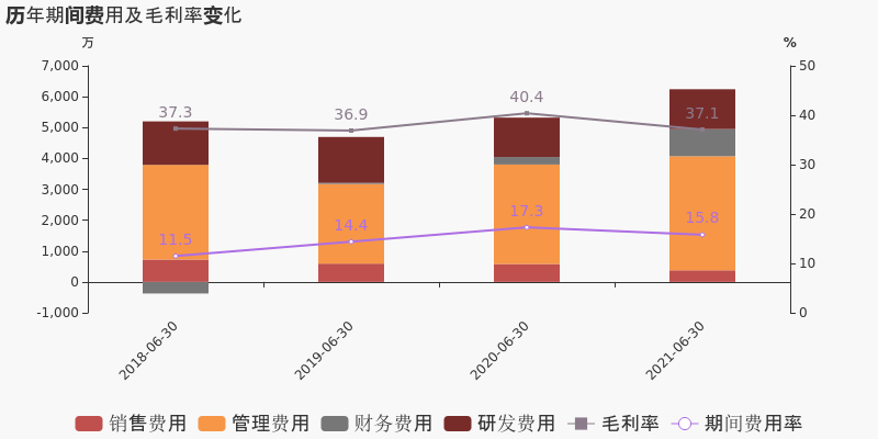 公司2021半年度营业成本2.5亿,同比增长35.4%,高于营业收入28.4%的增速,导致毛利率下降3.3%。期间费用率为15.8%,较去年下降1.5%。经营性现金流大幅下降98.4%至157.6万。