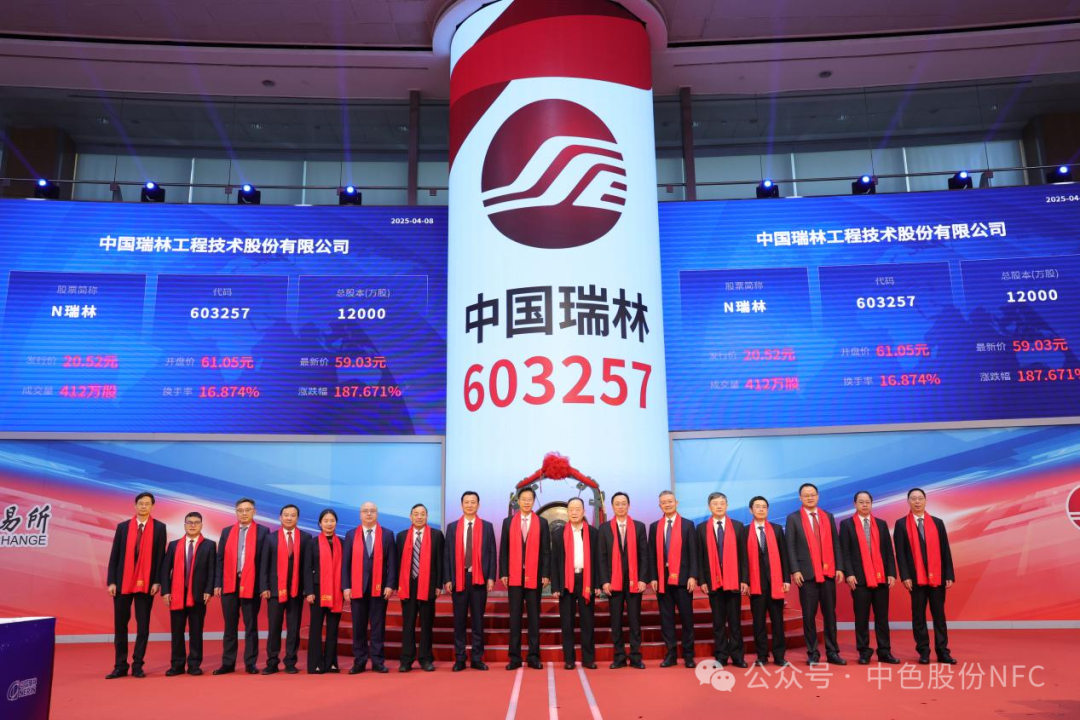 中国瑞林上市首日收盘价99.90元/股,较发行价大涨386.84%,获得了资本市场的认可,也彰显了市场对有色金属工业领域发展前景的看好。未来,双方将持续深化合作,坚定不移实施“走出去”战略,为全球有色金属工业的发展贡献更多中国力量。