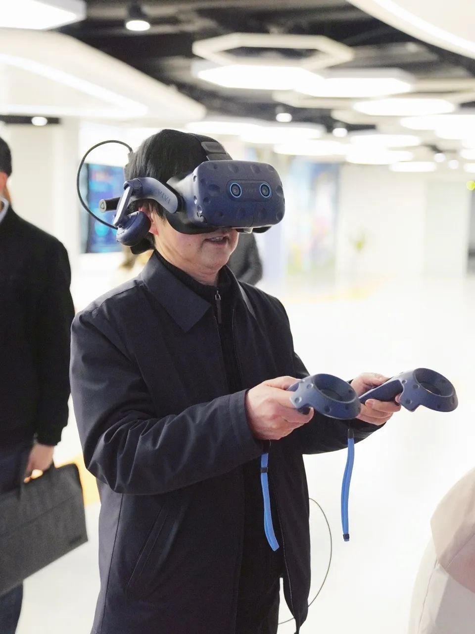 胡大同主席一行驻足参观了电魂自在里文化空间的艺术展品、馆藏图书等,对文化空间的智能化借阅模式和多元化服务体系赞不绝口。