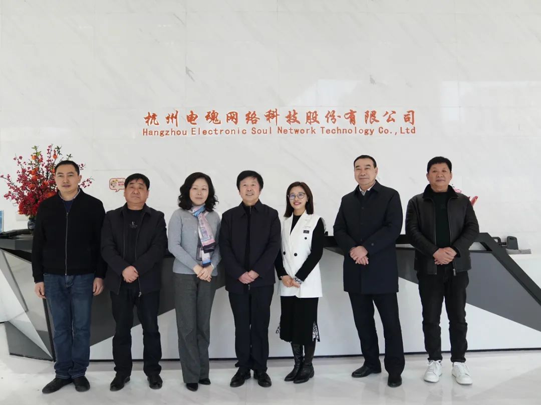 2月14日,安徽泗县政协副主席、工商联主席胡大同一行莅临滨江考察调研,杭州高新区(滨江)区委统战部副部长、工商联党组书记汤茵等领导陪同走访电魂网络。