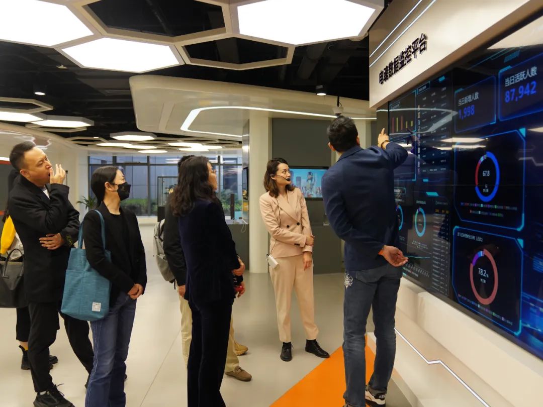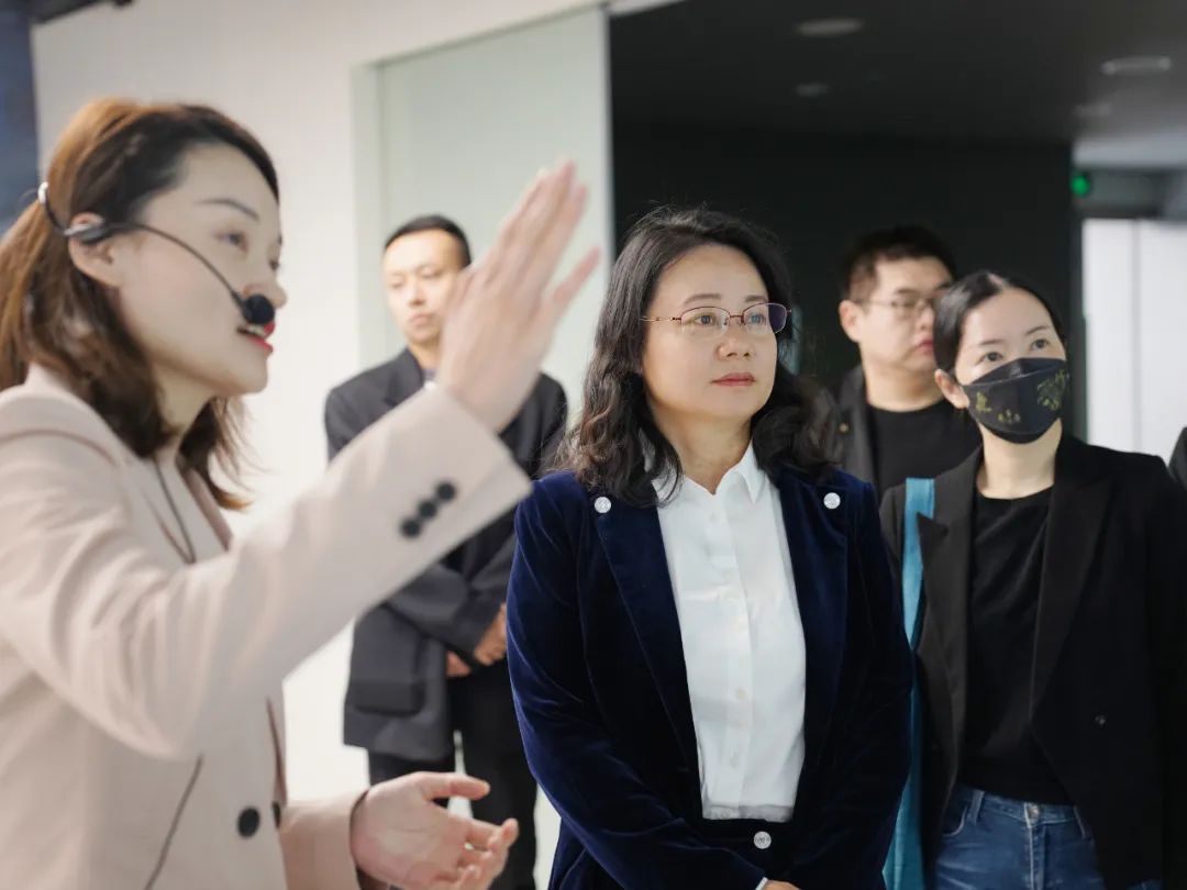 电魂网络副总经理郝杰带领叶春副区长一行参观电魂网络数字展厅,详细介绍了电魂网络的品牌发展历程、经营现状和企业文化等方面内容。