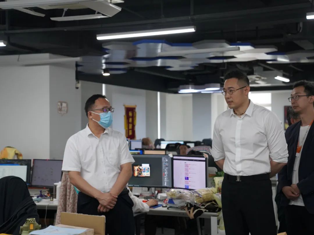 参观完展厅之后,海南省委宣传部领导一行来到了光年工作室,了解公司游戏研发及运营过程。海南省委宣传部副部长、省文资办主任蒋建民表示,电魂网络为员工创造了一个自由的工作空间,能够充分激发员工想象力与表现力。