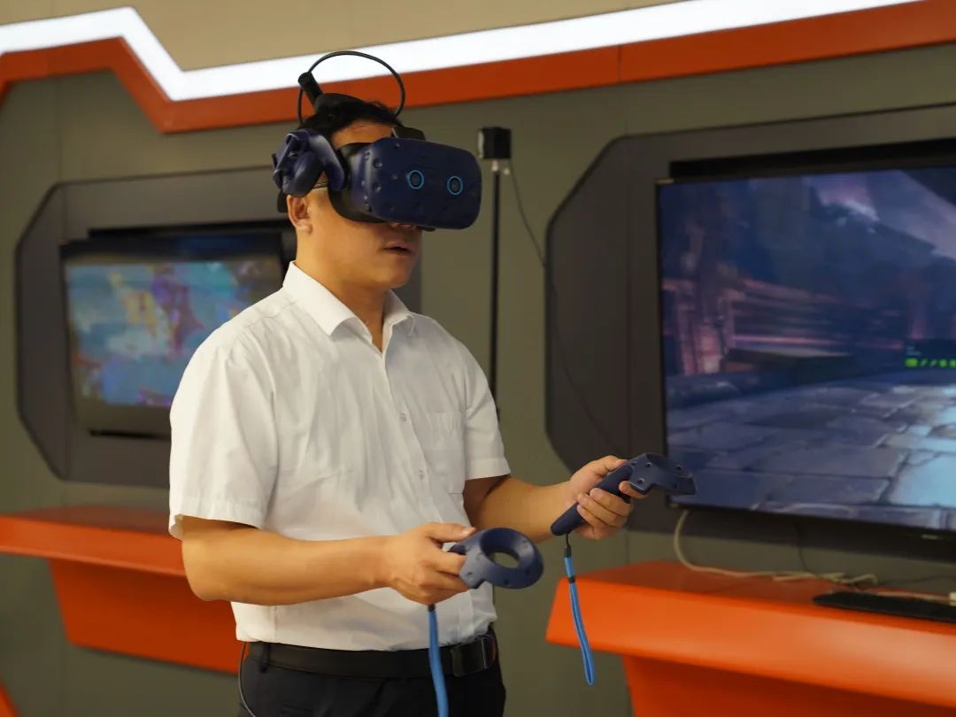 在参观企业展厅过程中,海南省委宣传部领导一行观看了企业宣传片以及企业主要产品,了解企业目前产品研发以及游戏电竞行业发展情况,期间,海南省委宣传部副部长、省文资办主任蒋建民试玩体验了VR游戏。