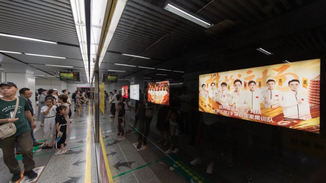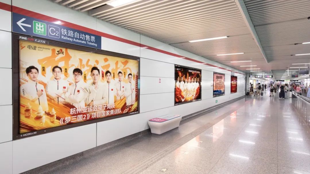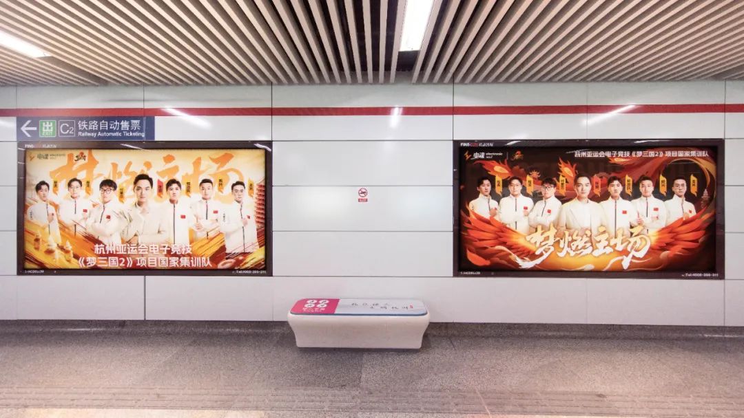 电魂网络为做好电竞东道主,早于上个月在杭州地铁1号线的凤起路、龙翔桥、武林广场、西兴等十余个站点,铺设了《梦三国2》项目国家集训队宣传海报。
