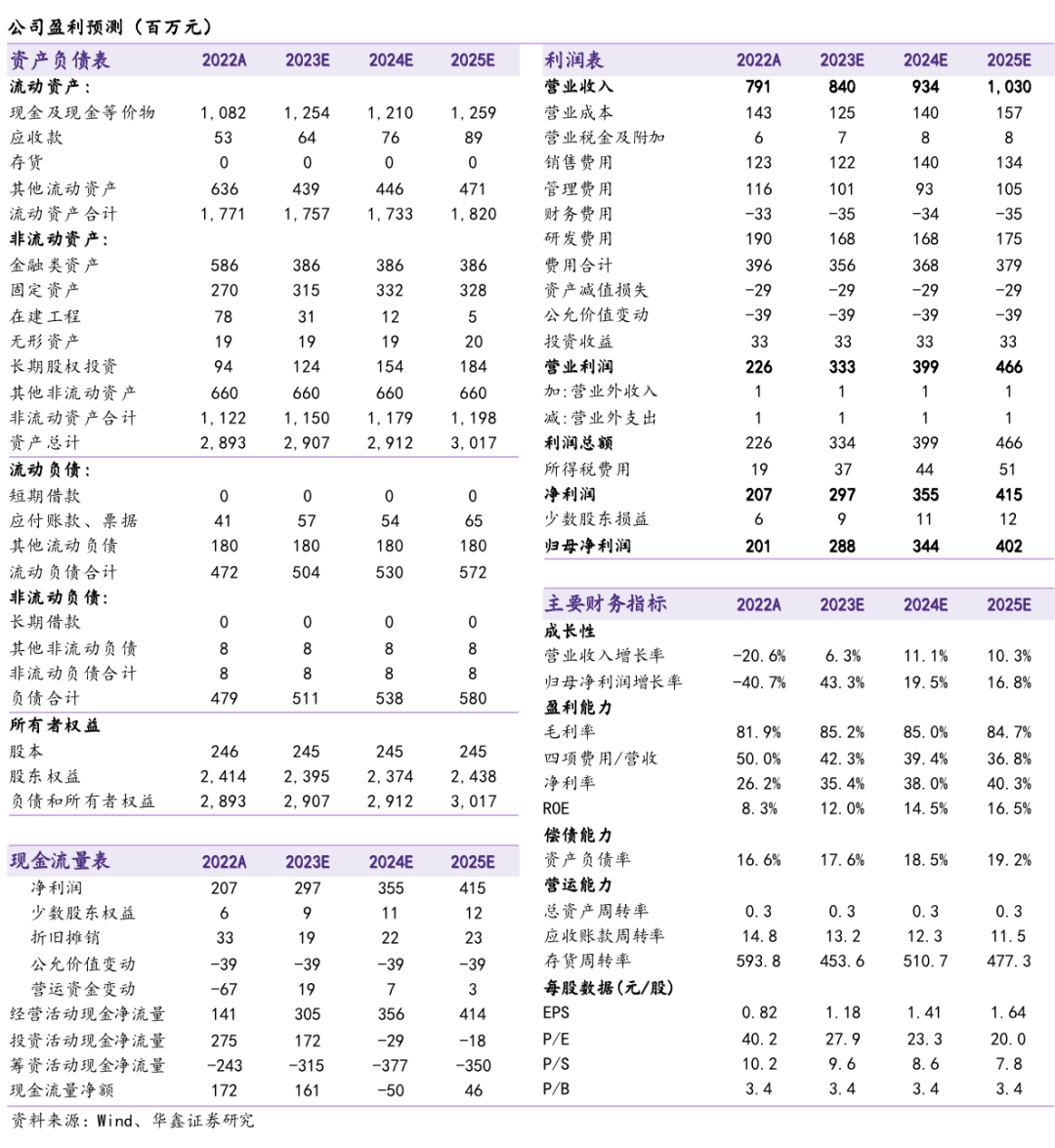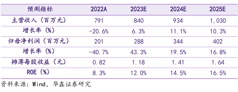 预测公司2023-2025年收入分别为8.40、9.34、10.30亿元,归母净利润分别为2.88、3.44、4.02亿元,EPS分别为1.18、1.41、1.64元,当前股价对应PE分别为27.9、23.3、20.0倍,维持“买入”投资评级。