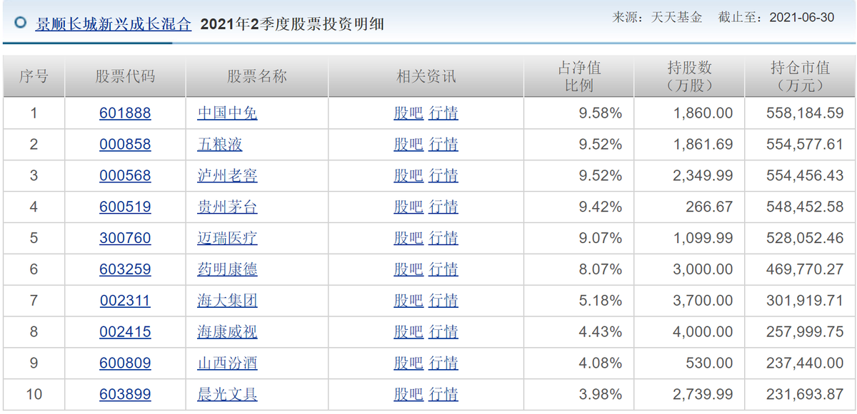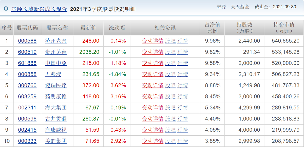 据三季报显示,刘彦春仍在豪赌“喝酒吃药”行情,前十大重仓股包括泸州老窖、贵州茅台、中国中免、五粮液、迈瑞医疗、药明康德、海大集团、古井贡酒、海康威视以及美的集团。前十大重仓股中大部分都处于下跌走势,难怪景顺长城新兴成长混合的业绩会遭遇滑铁卢。