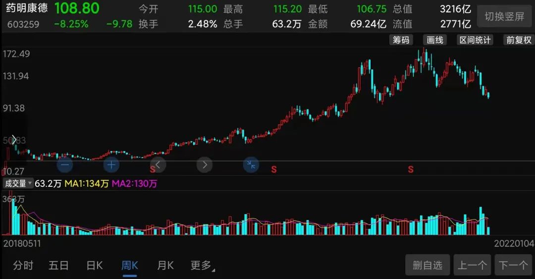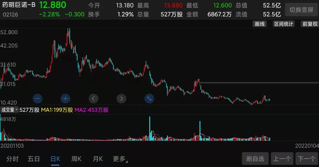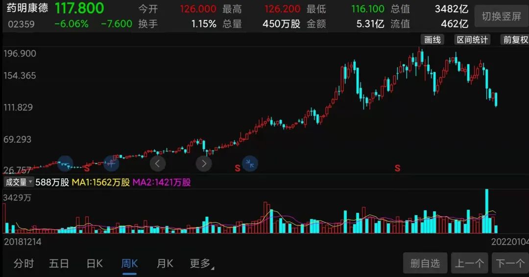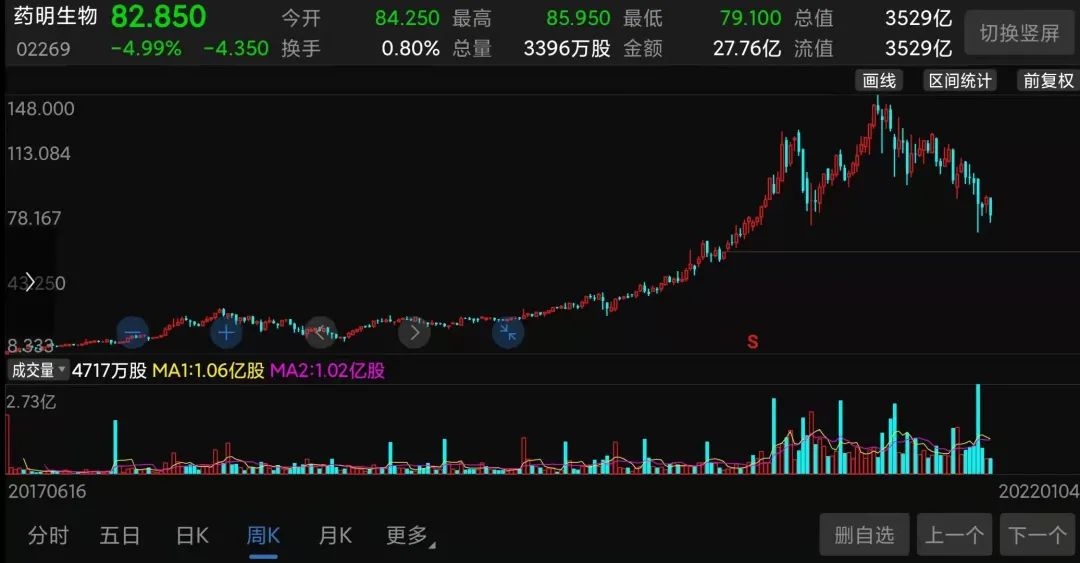 若从去年股价高位来看,A、港股两地药明康德均在去年7月16日创出历史新高,自创出历史高位以来,A股药明康德跌超38%、港股药明康德跌超41%,药明生物跌超50%,药明巨诺跌超80%。