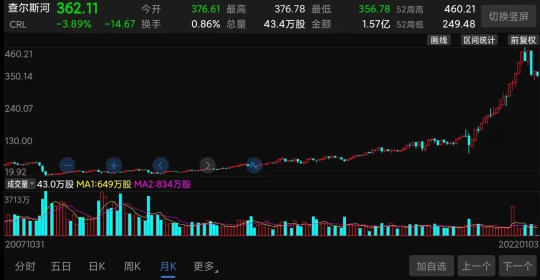 不过,查尔斯河实验室股价自去年9月底以来跌幅也不小,最大跌幅也超过了24%。