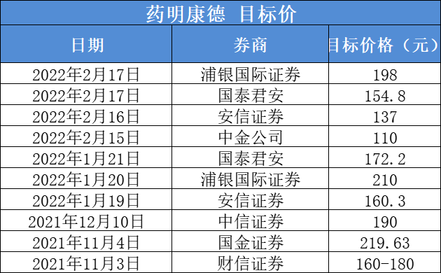 近4个以来又有诸多券商发布研报,称公司目标价最高可达220元/股之间,2022年2月17日浦银国际证券发布研报称,其目标价可达198元/股。