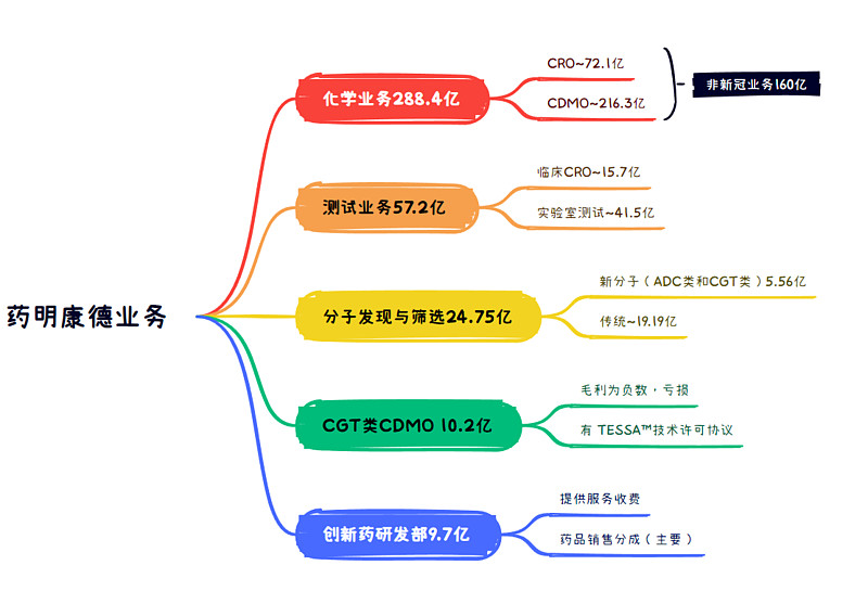 其中CGT领域药明康德的实际收入是15.76亿,远超现在A股上的细分玩家和元生物的2.91亿。测试业务主要是医疗器械检测服务、境外精准医疗研发生产服务等。