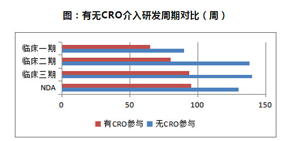 根据Tufts CSDD数据,有CRO参与的药品临床I-III期和NDA阶段分别可以减少26%、42%、31%和24%的耗时,平均缩短时间约31%。