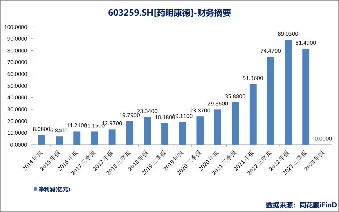 2022年,药明康德营业收入393.55亿,同比增长71.84%,净利润88.14亿,同比增长72.91%。