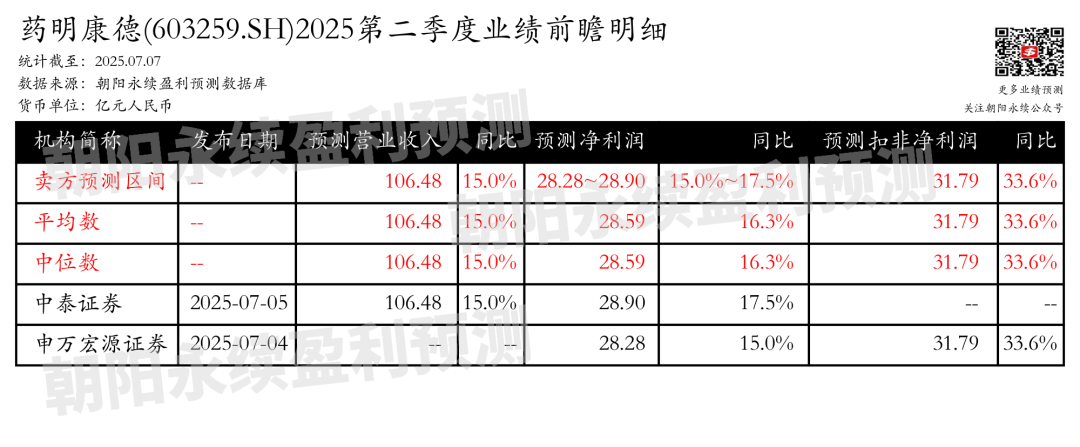 截至2025年07月07日,根据朝阳永续季度业绩前瞻数据: