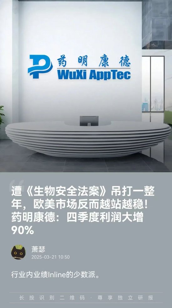例如在年初时,药明康德(603259.SH)给出过2025年持续经营业务收入增长10%至15%、non-IFRS归母净利率进一步提升的指引。