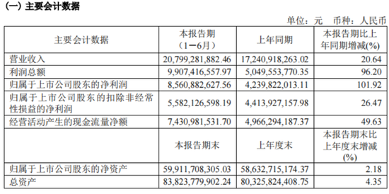 利润端的表现更为夸张,上半年归母净利润85.61亿,同比激增101.9%,但其中有约32亿来自出售参股公司药明合联(2268.HK)的投资收益。