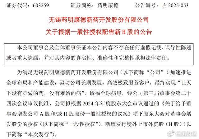 该消息发布之后,药明康德H股跌幅超过了5.5%。
