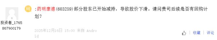 但本报记者在上证e互动平台看到一位投资者向公司提问道:“部分股东已开始减持,导致股价下滑。请问贵司后续是否有回购计划?”