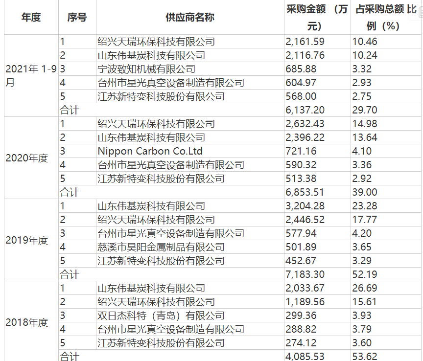 恒普科技称,2021年前三季度,恒普科技对合盛硅业的销售收入占宽禁带半导体设备销售收入的97.07%。根据公司目前签署的订单情况,2021年全年及2022年,预计来自合盛硅业的销售收入在宽禁带半导体设备收入中仍将占有较高比例,且2022年来自合盛硅业的销售收入仍将有大幅增长。