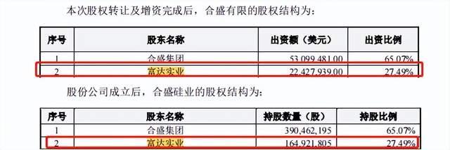 合盛硅业招股书显示,当初富达实业的出资金额约2242.8万美元,按当前汇率计算,约合人民币1.6亿元。股份公司成立后,富达实业持有合盛硅业27.49%股权,成为第二大股东。