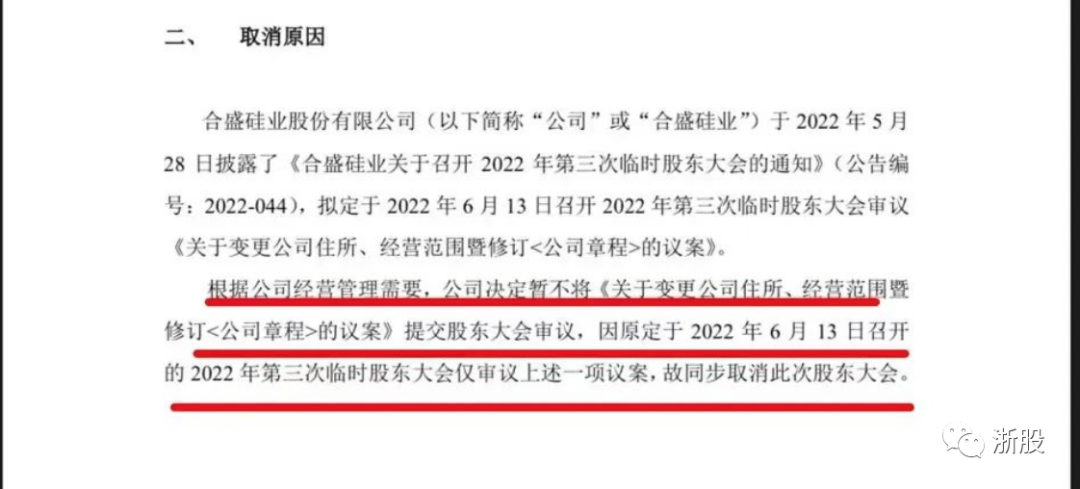 上市公司变更住所需要股东大会投票通过,合盛硅业公告将在6月13日召开临时股东大会。6月8日,这个会议却被突然取消了。