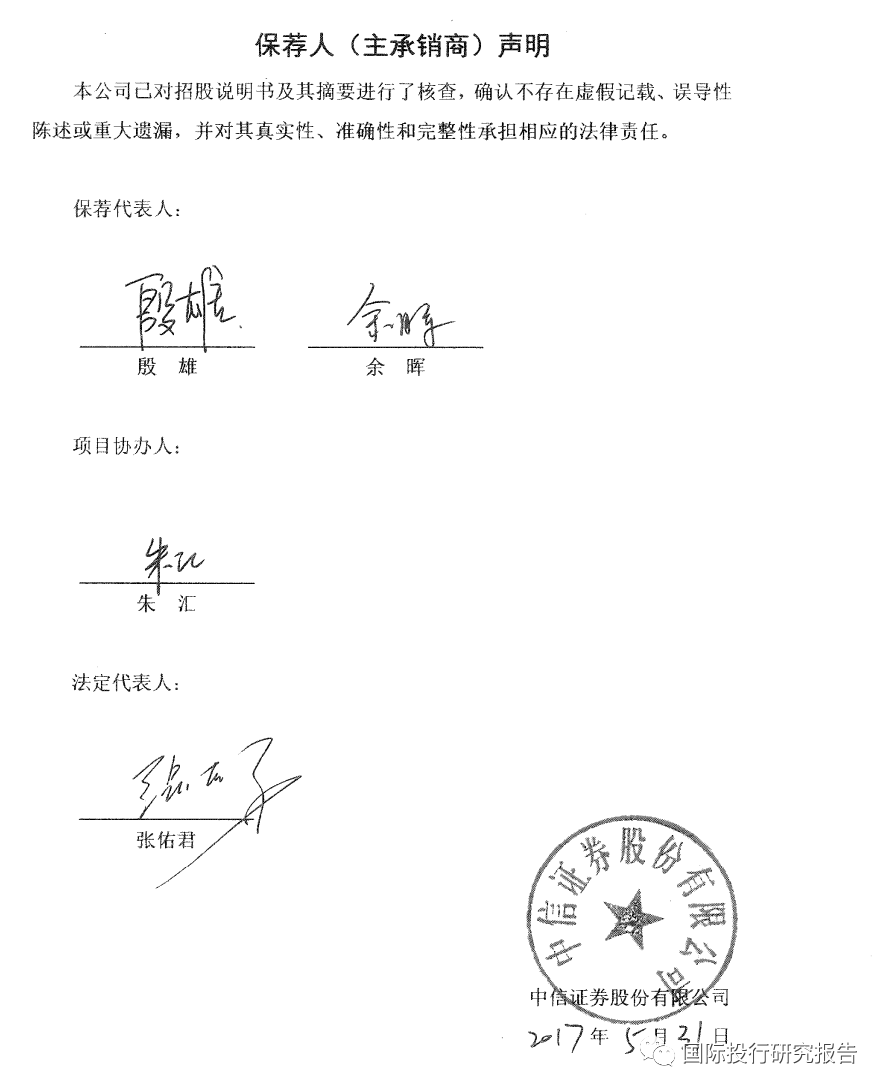 5、合盛硅业2017年IPO的保荐商是中信证券,保荐人是殷雄和余晖,有意思的是,在代表高管签字的地方,方还排在罗前面。如果涉及到信息披露问题,那么中信证券也可能被牵连刀查。