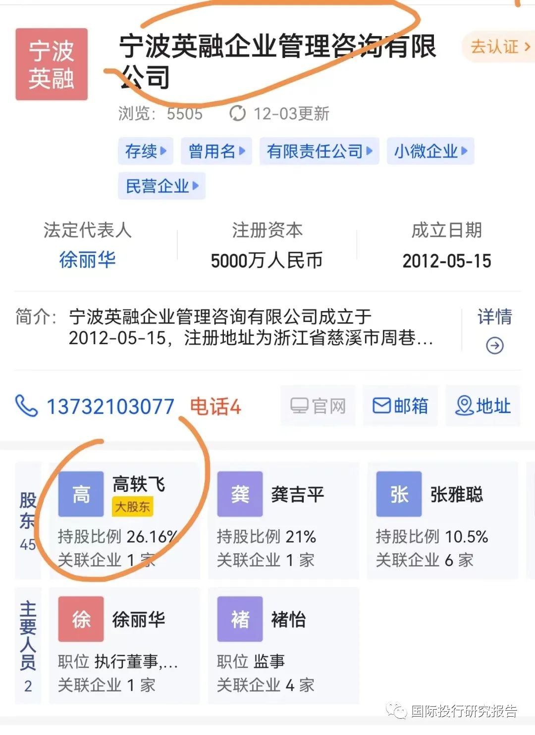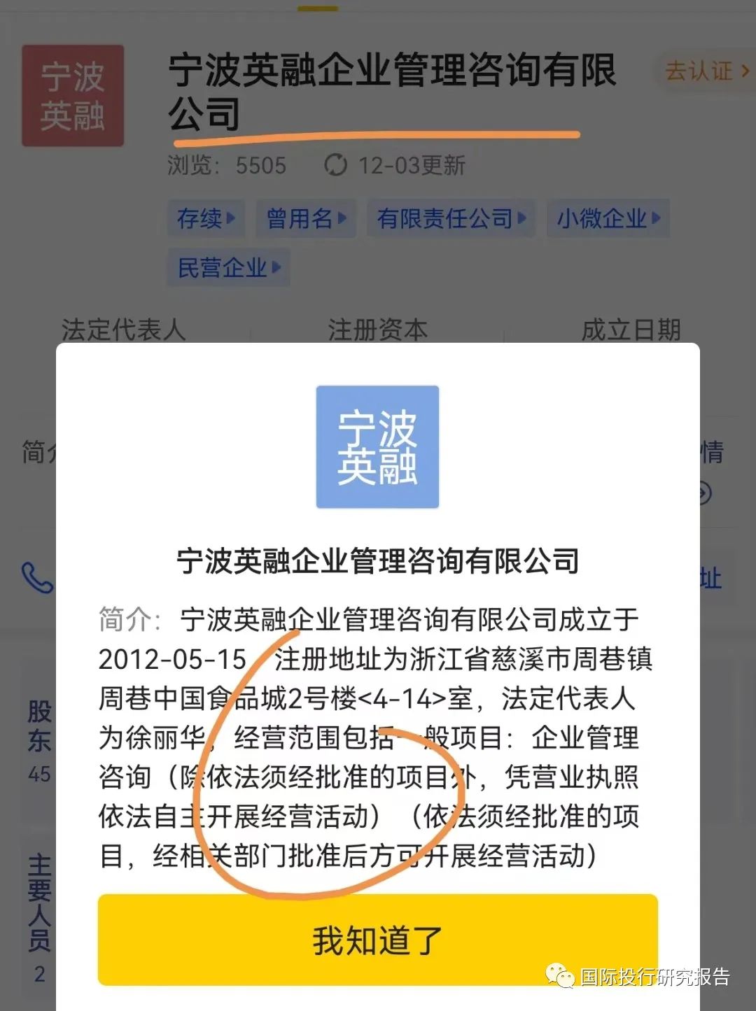 宁波英融的主业是“企业管理”实质是高管持股公司