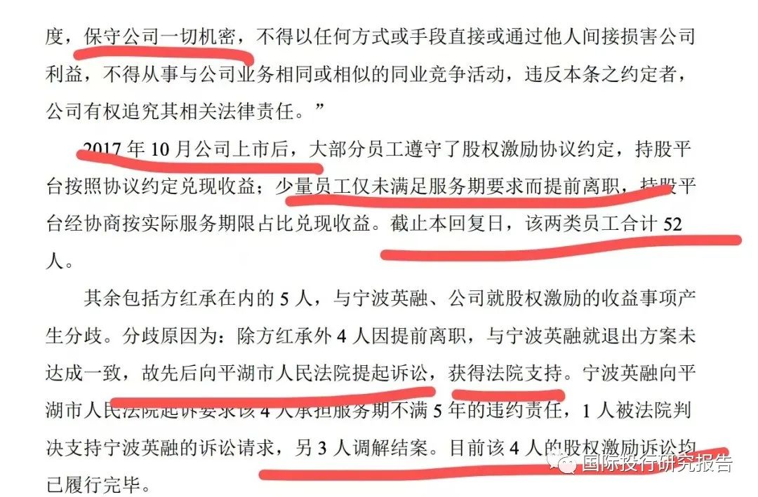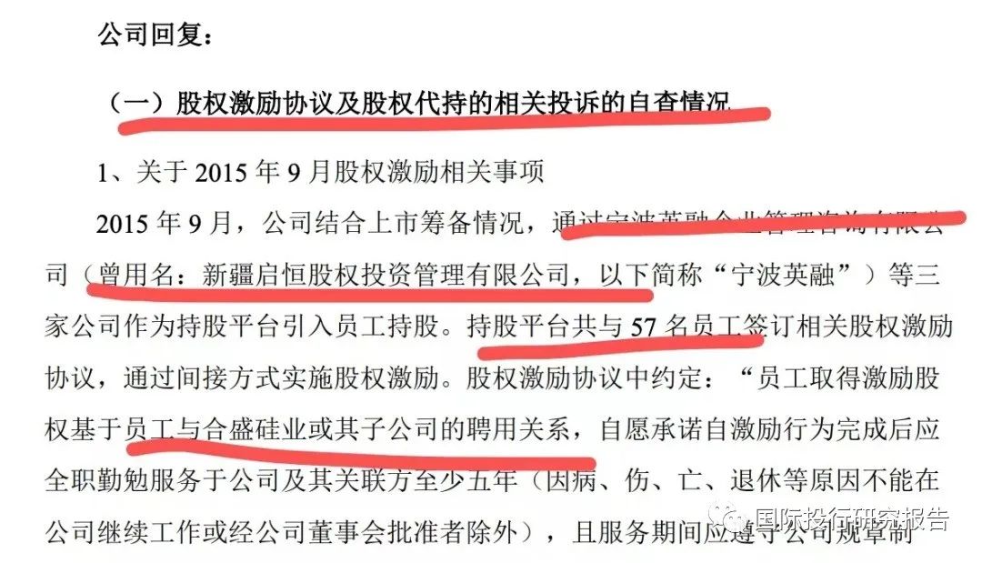 3、注册制以后,股权激励等信息都要求穿透很多都被多次问询。注册制之前,这些问题其实也是被问询的了。看了一下当时证监会发审委在2017-06-16的反馈意见,其中第一个意见就是合盛硅业的包括现在的纠纷猪脚只有的宁波英融等的来龙去脉。因为在核资制时期,大众并不能看到当时合盛硅业的回复。总之就是在IPO说明书中完全没这个信息。