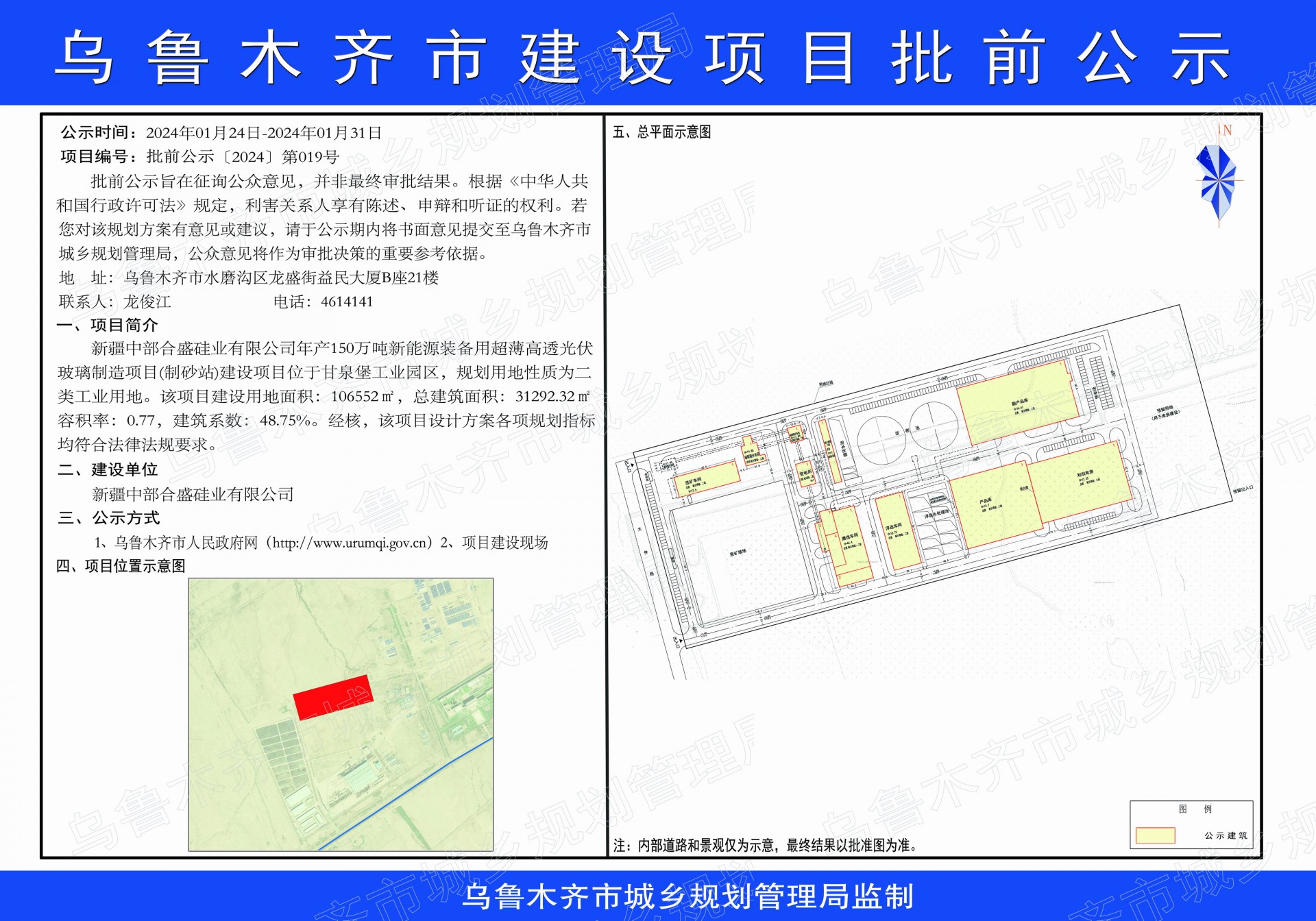 国际能源网获悉,1月24日,新疆中部合盛硅业有限公司年产150万吨新能源装备用超薄高透光伏玻璃制造项目(制砂站)建设项目批前公示。