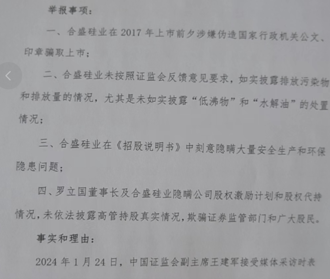 上述合盛硅业董秘办人士告诉记者,“包括那些举报的内容、调查情况,公司都会后续有公告所公告,给社会公众有回复的”。