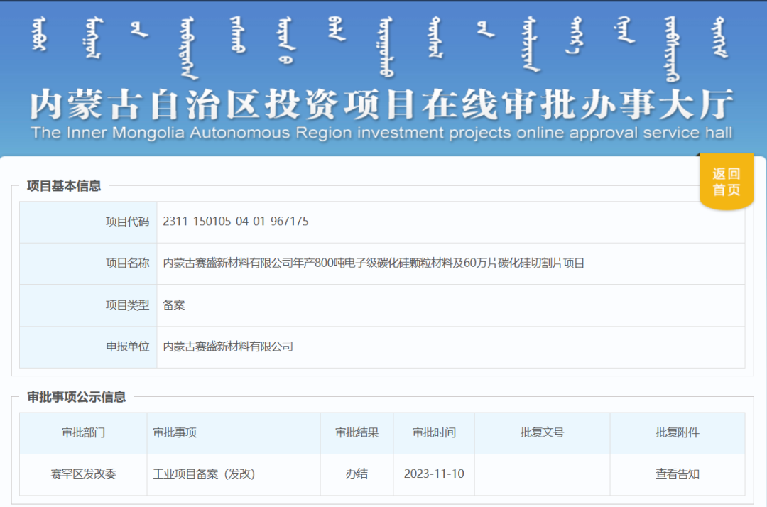 1月6日,据“青橙融媒”消息,合盛硅业旗下的“年产800吨电子级碳化硅颗粒材料及60万片碳化硅切割片项目”预计今年3月初试生产。