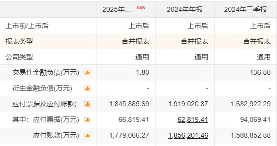 而且公司的应付票据和账款科目中几乎全是应付账款和较少的票据,也颇为奇特。应付账款180亿,相当于过去三个季度的营收总和,厉害了!具体应付账款分拆如下(2024年Q4):