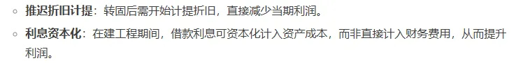 在建工程不转固,有什么样的好处呢?DeepSeek给出了很好的解释:
