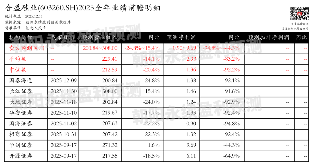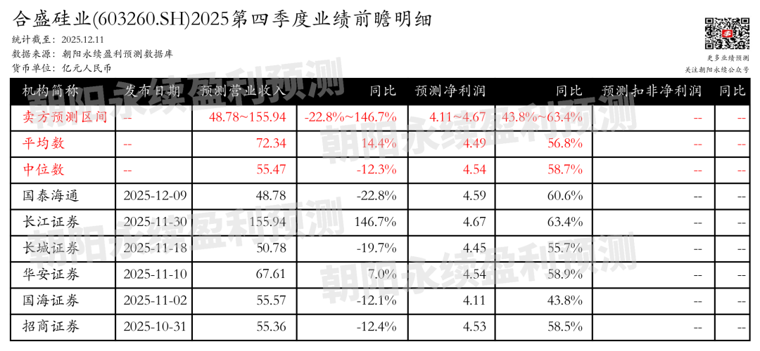 截至2025年12月11日,根据朝阳永续季度业绩前瞻数据: