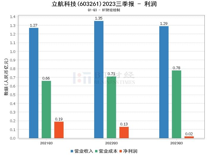 在利润方面,立航科技2023年三季度的营业收入为1.29亿元,较上年同期的1.35亿元有所下滑。营业利润为280.16万元,较上年同期的1589.64万元大幅下降。净利润为187.28万元,较上年同期的1252.13万元大幅下滑。这主要系确认的股权激励费用增加所致。