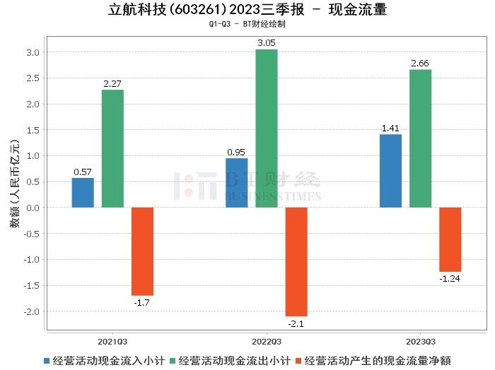 在现金流量方面,立航科技2023年三季度的经营活动现金流入小计为1.41亿元,较上年同期的9503.46万元有所增加。经营活动现金流出小计为2.66亿元,较上年同期的3.05亿元有所减少。这主要系收到的货款增加和购买材料支付的现金减少所致。
