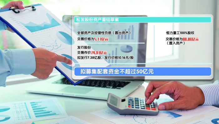 根据重组草案,松发股份拟以重大资产置换及发行股份购买资产的方式,购买恒力重工100%股权。本次重组拟置出资产交易价格为5.13亿元,拟置入资产交易价格为80.06亿元。松发股份拟以发行股份的方式向交易对方购买置入资产和置出资产交易对价的差额部分,该部分对应交易作价为74.93亿元。按发行股份价格10.16元/股计算,松发股份本次发行的股票数量总计为7.38亿股。